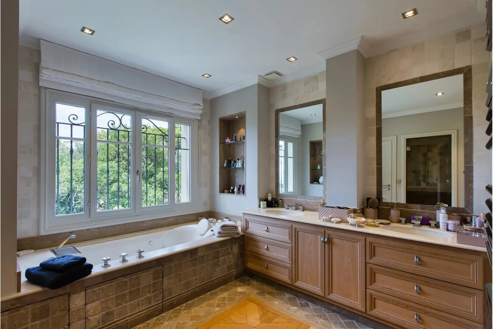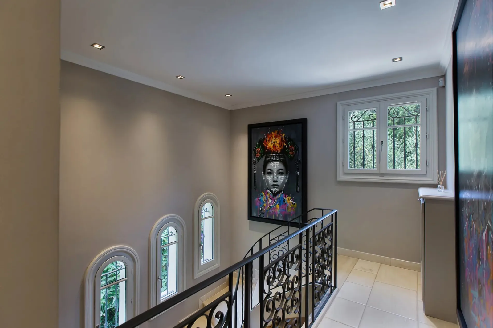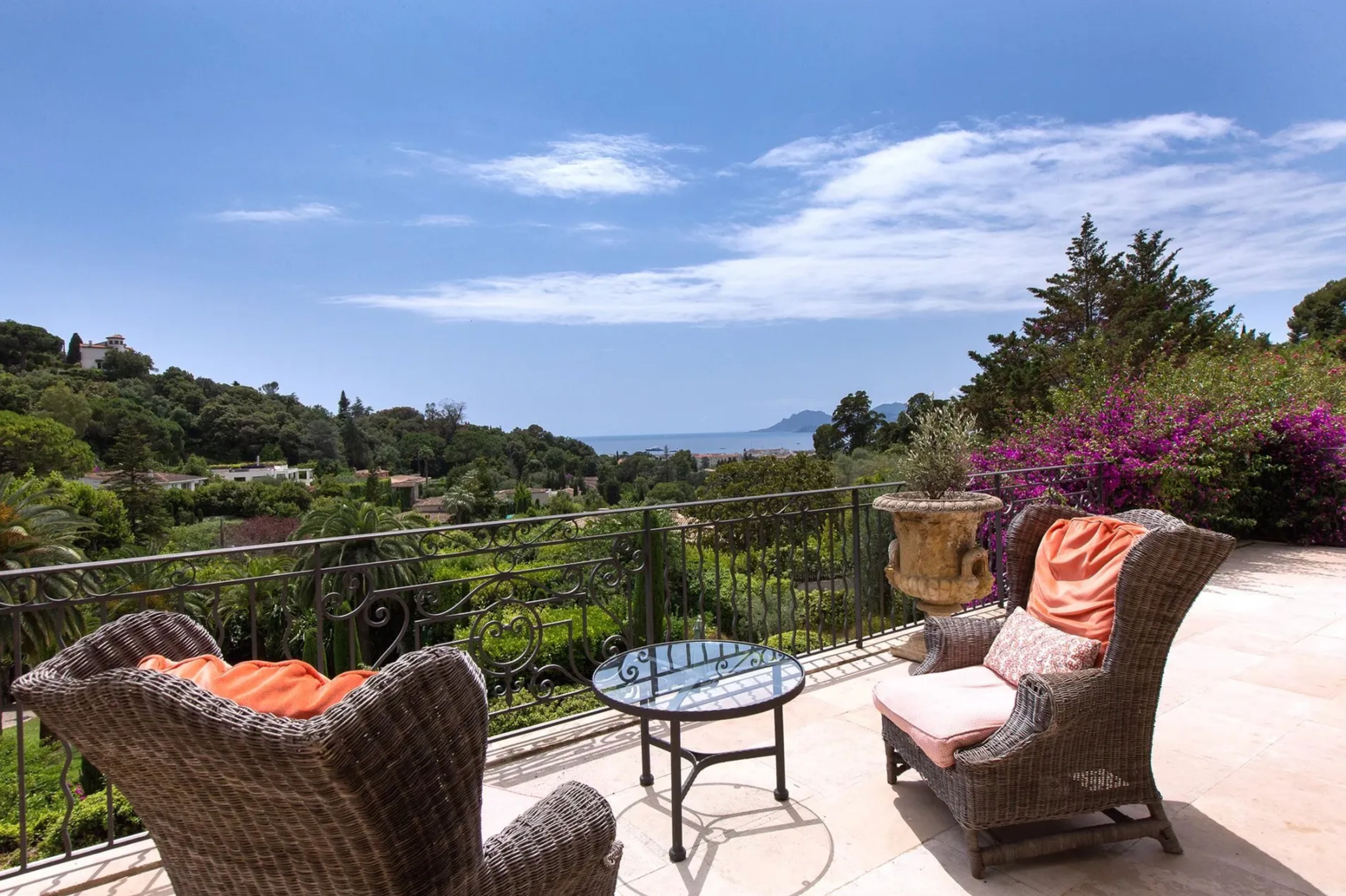 Cette propriété, en parfait état (prestations de qualité), d’inspiration Toscane bénéficie d’une vue splendide sur la baie de Cannes et les collines environnantes. Le terrain d’environ 3.500m² est complanté d’oliviers, de cyprès et de diverses essences méditerranéennes, qui offre un sentiment de tranquillité à la propriété. Un vrai havre de paix !